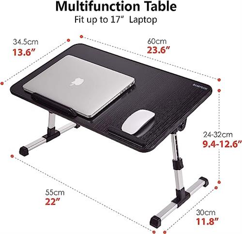 •Fully Assembled Portable Foldable Laptop Desk With USB Cooling Fan •Light Weight Easy Flexible Height And Angle Adjustments •Two Auto-Lock Buttons On Each Side Easily Enable Quick Changes In Height •5 Different Heights Can Be Set By the Legs •Adjust The Surface Level To 4 Different Angles (From 0-36°). •Suitable For laptops Up to 17 Inch •Max Loading Up to 10kg •Can also be used as a Snack tray while watching TV |